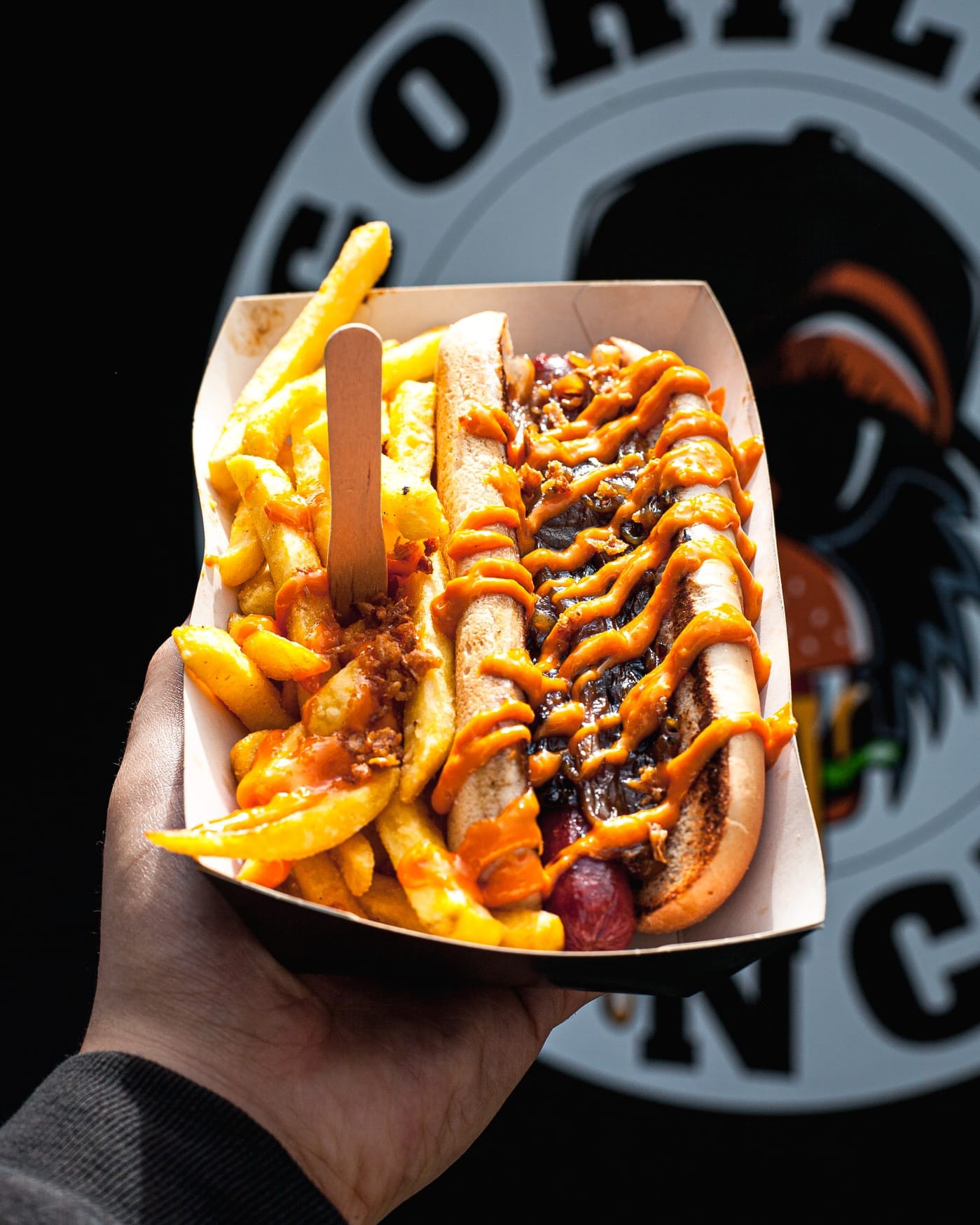 Crispy skin on fries with choice of chicken strips or smash patty topped with cheetos, jalapenos and a choice of sauce