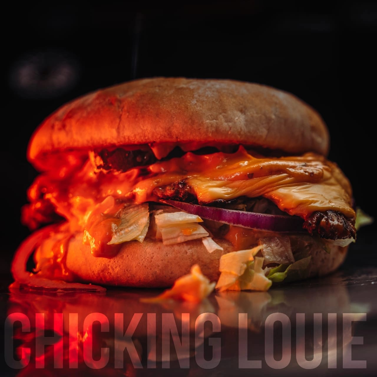 2oz beef patty & 2 x grilled chicken strips, doritos, sweet sauce, lettuce & cheese.